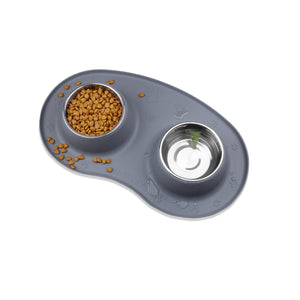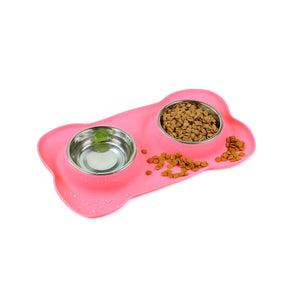 Vivaglory Dog Bowls Set with Double Stainless Steel Feeder Bowls and Wider Non Skid Spill Proof Silicone Mat for Cats Puppies Dogs